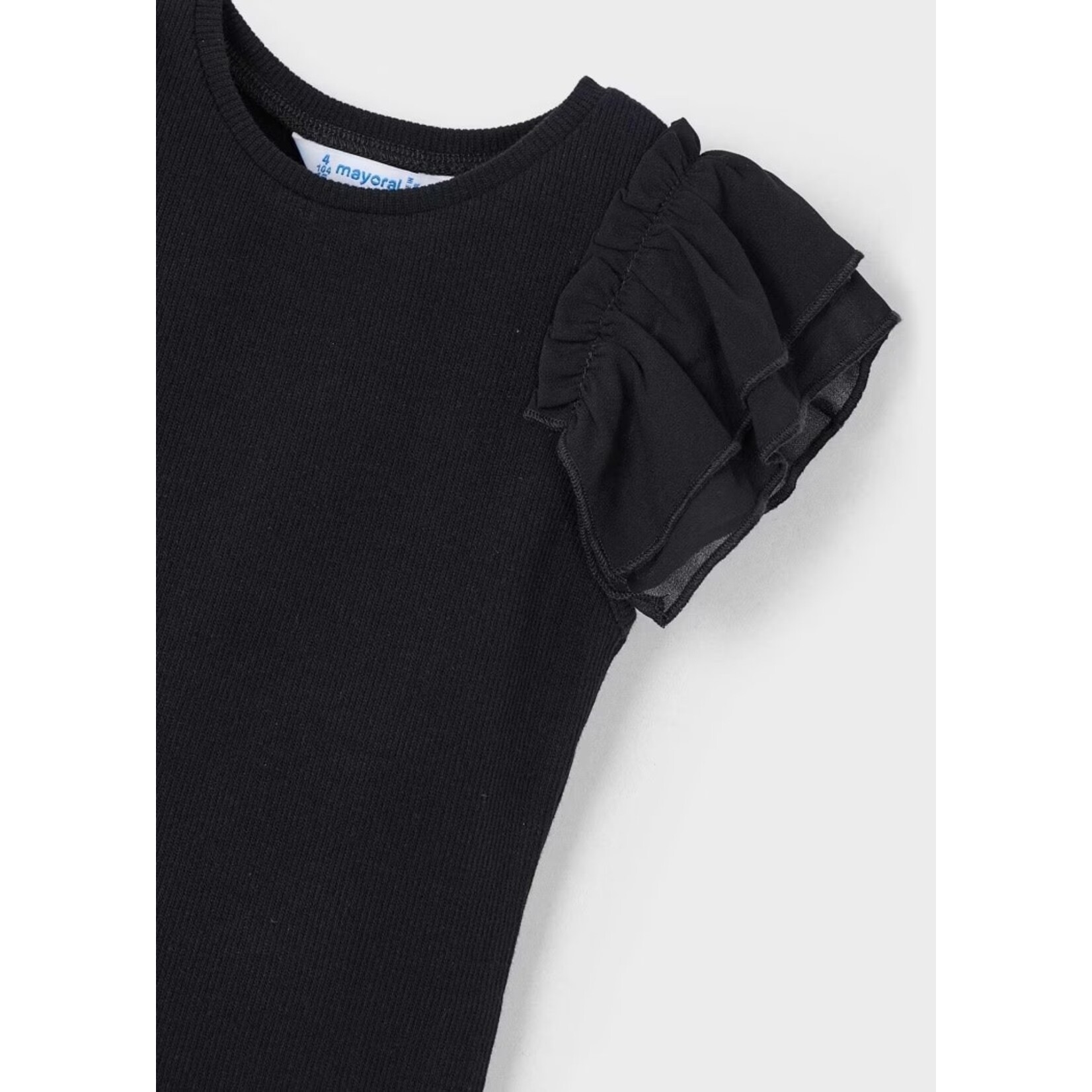 Chandail noir côtelé à manches courtes en volant